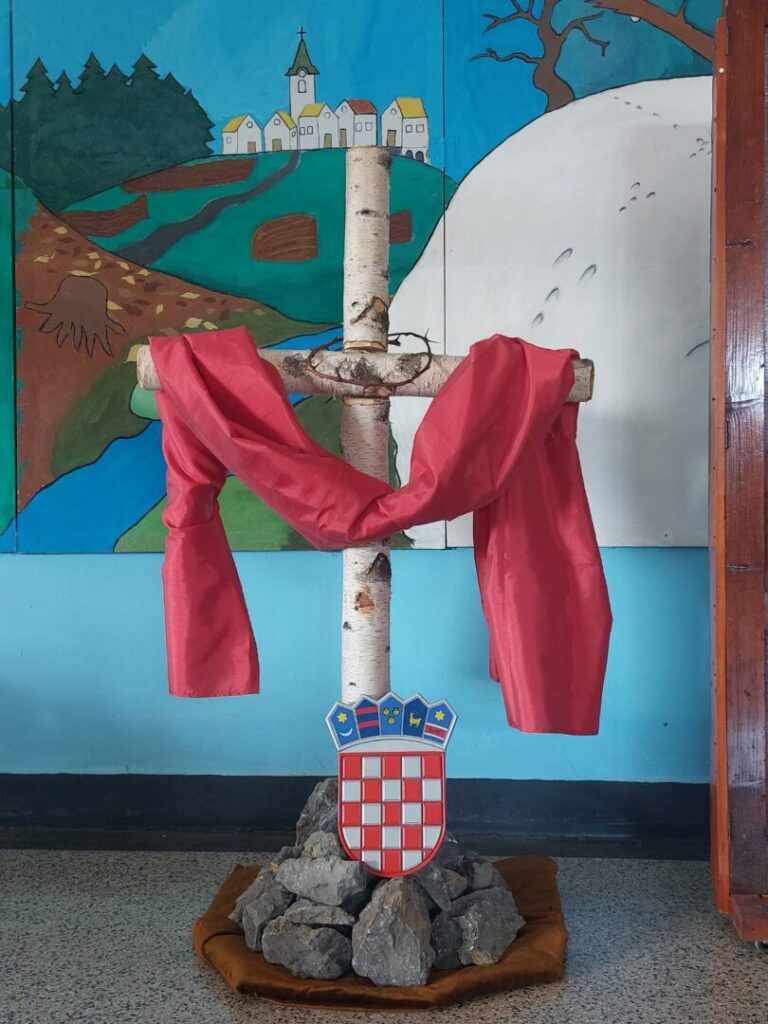 U petak 14. studenoga 2025. g., svi su učenici i djelatnici naše škole, kao i svake godine, dostojanstveno i s pijetetom sudjelovali u obilježavanju Dana sjećanja na žrtvu Vukovara i Škabrnje te Dana sjećanja na žrtve Domovinskog rata. Ove godine je naglasak bio na nedavno pokopanom heroju obrane Vukovara, Francuzu Jean-Michelu Nicolieru. Program smo započeli uvodnim riječima učenika Antonia Petrinića i Ivana Račkog te videoprojekcijom pjesme „Oči u oči“ klape sv. Juraj Hrvatske ratne mornarice. Učenici su nakon toga poslušali tekst o Jean-Michelu Nicolieru, a nakon toga su dvije recitacije pročitali učenici Dominik Možnik i Tia Šutej.