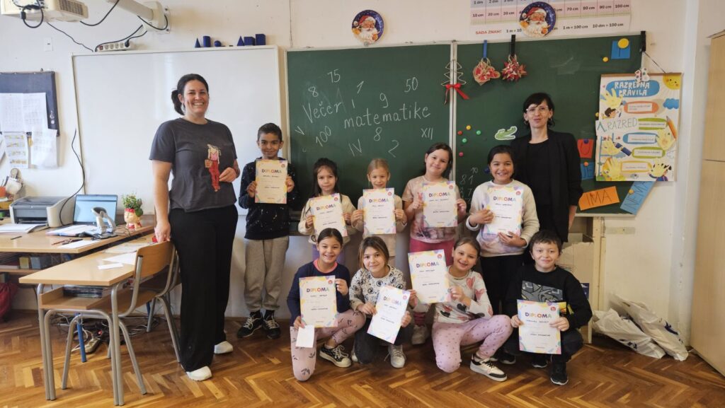 Na Večeri matematike sudjelovali su svi učenici razredne nastave sa svojim učiteljicama. Bila je to 13. Večer matematike u organizaciji Hrvatskog matematičkog društva, održana 4. prosinca 2025. g. u Osnovnoj školi Brod Moravice.